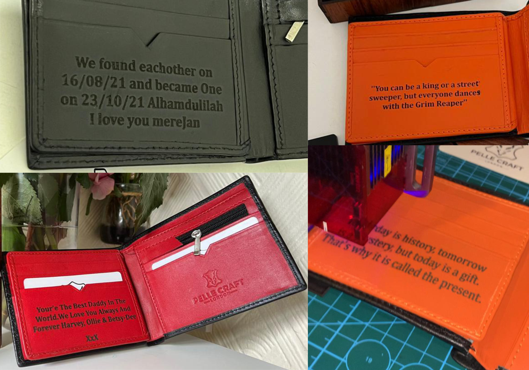 Here at Pelle Craft, we are proud to offer a laser engraving service on most of our leather accessories. You can add initials, names, dates, logo or special messages to create a truly unique, thoughtful and sentimental gift that will be cherished for years.